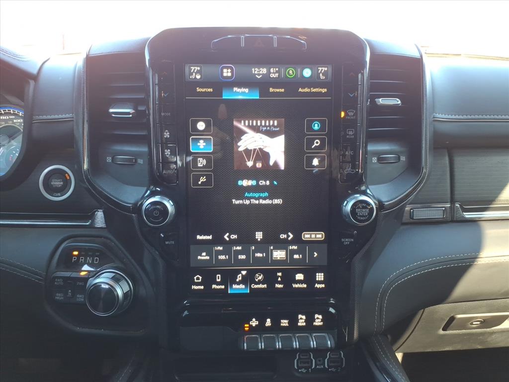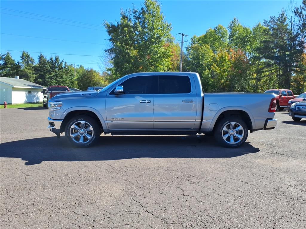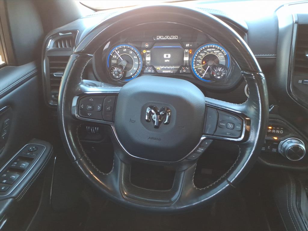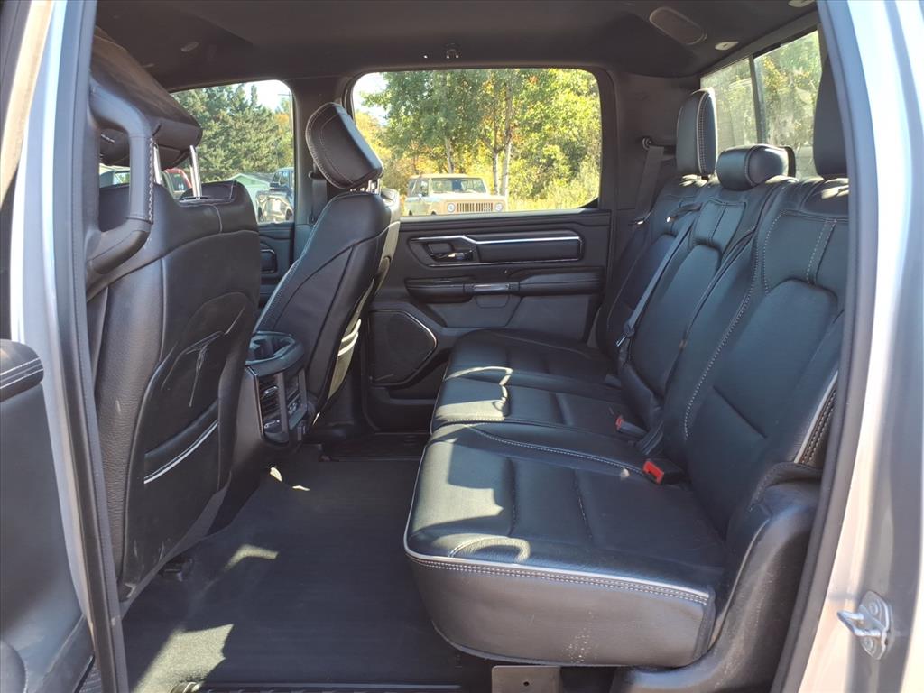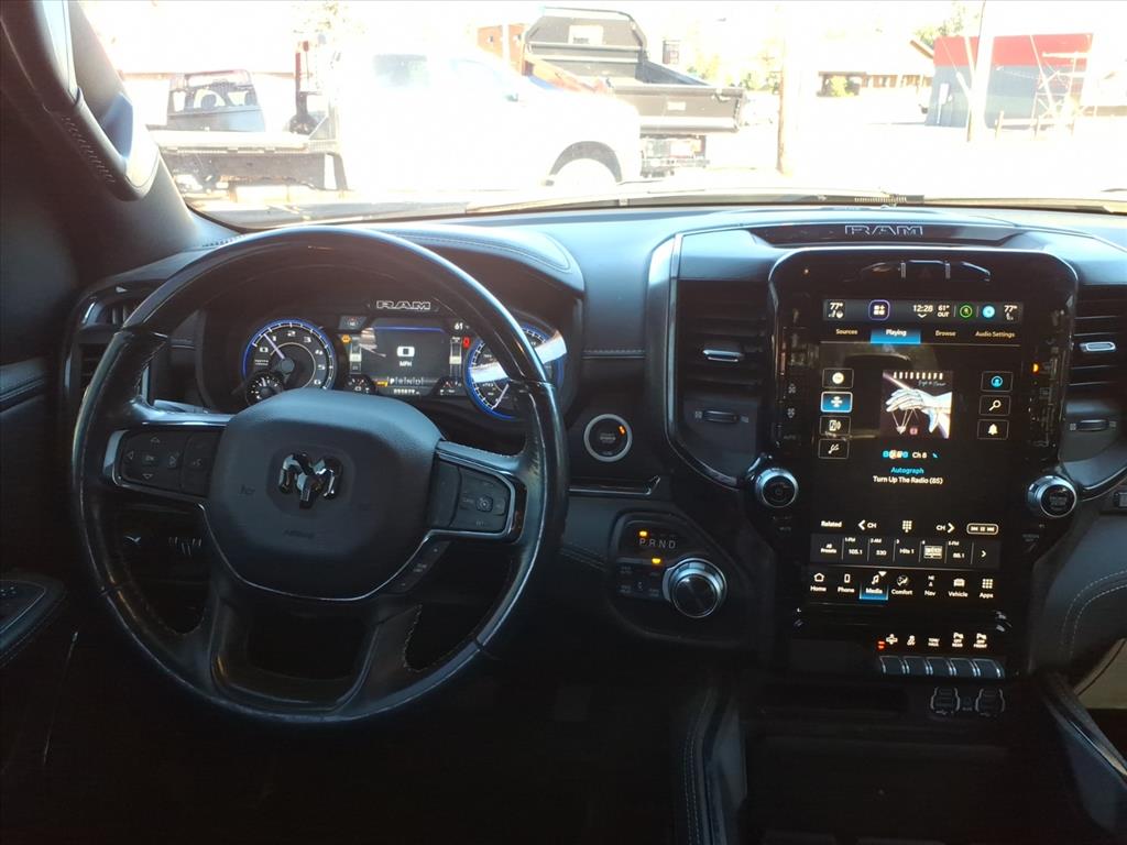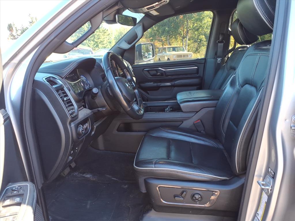 This 2022 RAM Crew Cab 4x4, 1500 Limited is a vehicle that has been meticulously maintained and driven with care. With 55,879 miles, this car has plenty of life left in it and its 5.7 liter HEMI V8 395hp 410 lb-ft engine with sequential port fuel injection provides plenty of power for any terrain. It also has an impressive fuel economy of 15 mpg in the city and 21 mpg on the highway, making it an economical choice for any driver. Safety features include a 5 out of 5 star crash test rating, as well as touch screen display, Bluetooth audio connection, blind spot sensor, hill start assist, part time with on demand four wheel drive, navigation system with voice recognition, and premium leather trimmed bucket seats and leather seats. This car truly has it all!