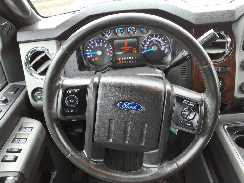 This vehicle is a 2016 Ford F-250 Super Duty Crew Cab 4x4 Lariat, with a 6.2 liter Flex Fuel V8 385hp 405 lb-ft engine and sequential fuel injection. It has driven 120,393 miles and has a crash test rating of 4 out of 5 stars. It features a touch screen display, Bluetooth audio connection, hill start assist, part time four wheel drive, Bluetooth phone connectivity, and leather seats. This car is truly a modern marvel and is sure to turn heads wherever it goes.