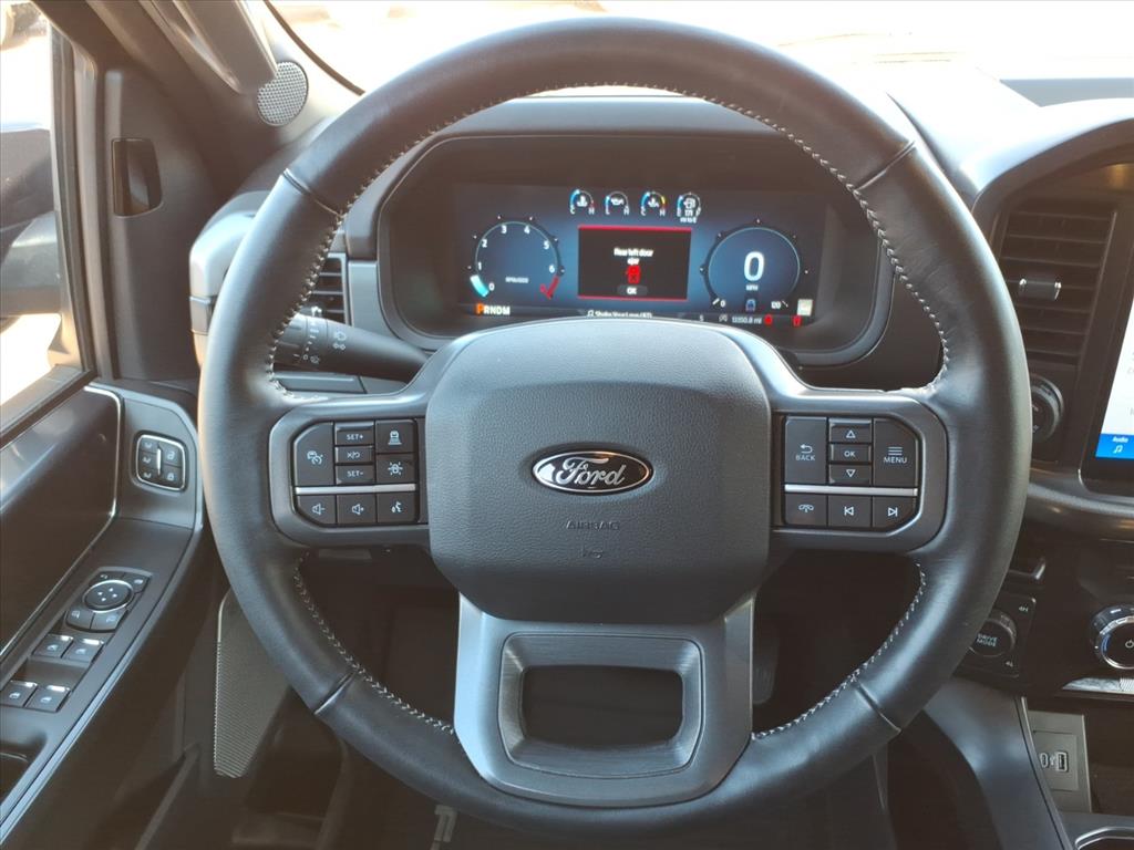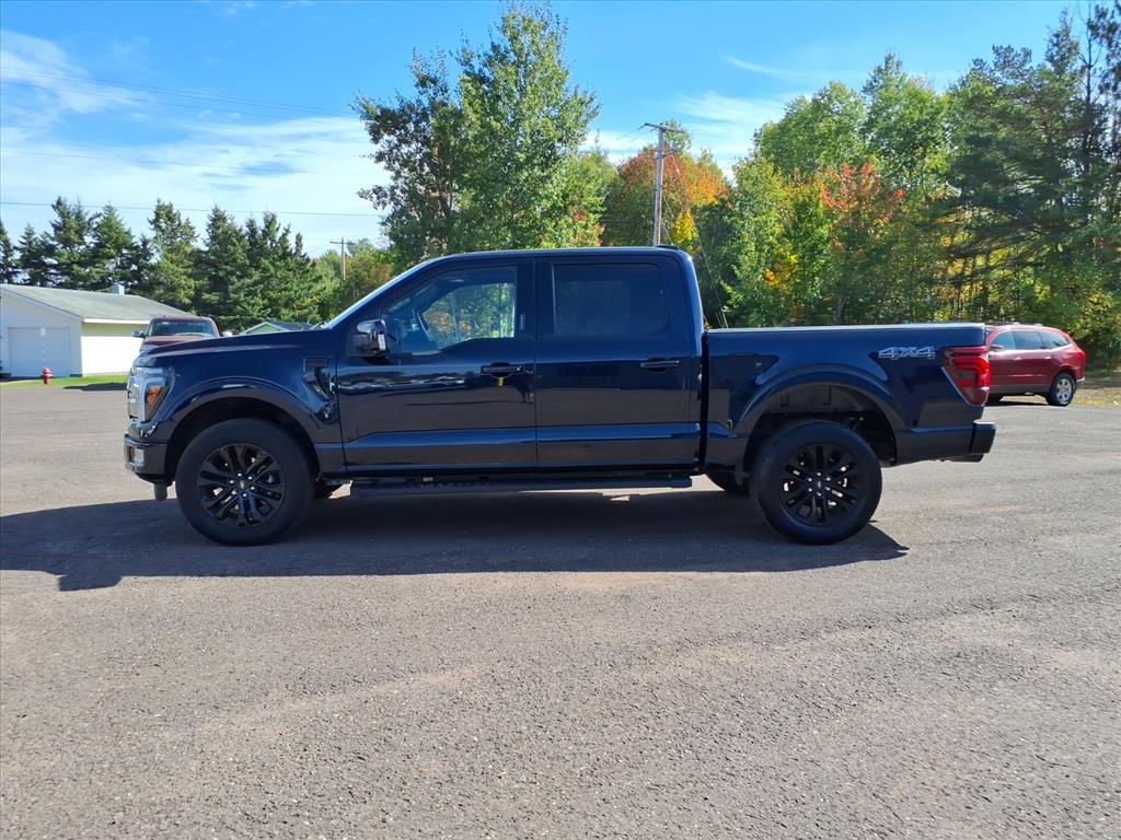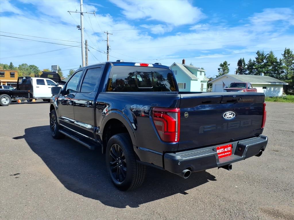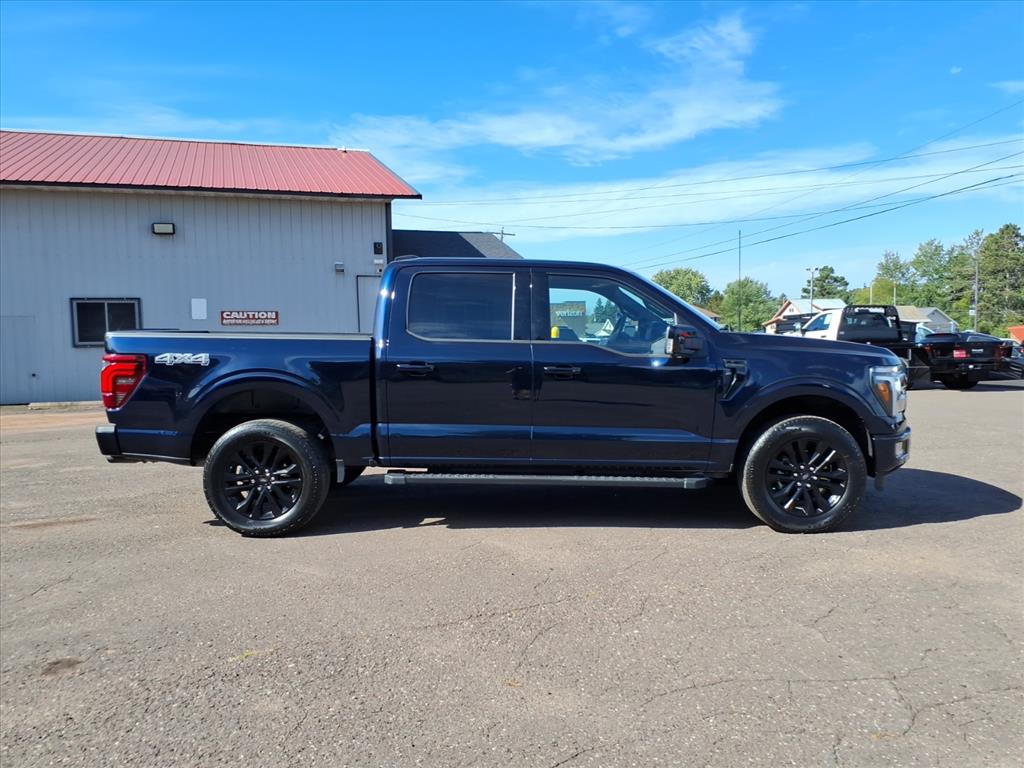 This vehicle is a 2024 Ford Supercrew 4x4 F-150 Lariat, with a 3.5 liter EcoBoost Twin Turbo V6 400hp 500 lb-ft engine, and twin turbo. It has driven 13,350 miles and has a fuel economy of 16 mpg in the city and 24 mpg on the highway. It has been crash tested for 5 out of 5 stars and comes with many features such as touch screen display, Bluetooth audio connection, blind spot sensor, hill start assist, part time with on demand four wheel drive, navigation system with voice recognition, and Bluetooth phone connectivity. Leather-trimmed seats complete the luxurious experience of this motorcar.