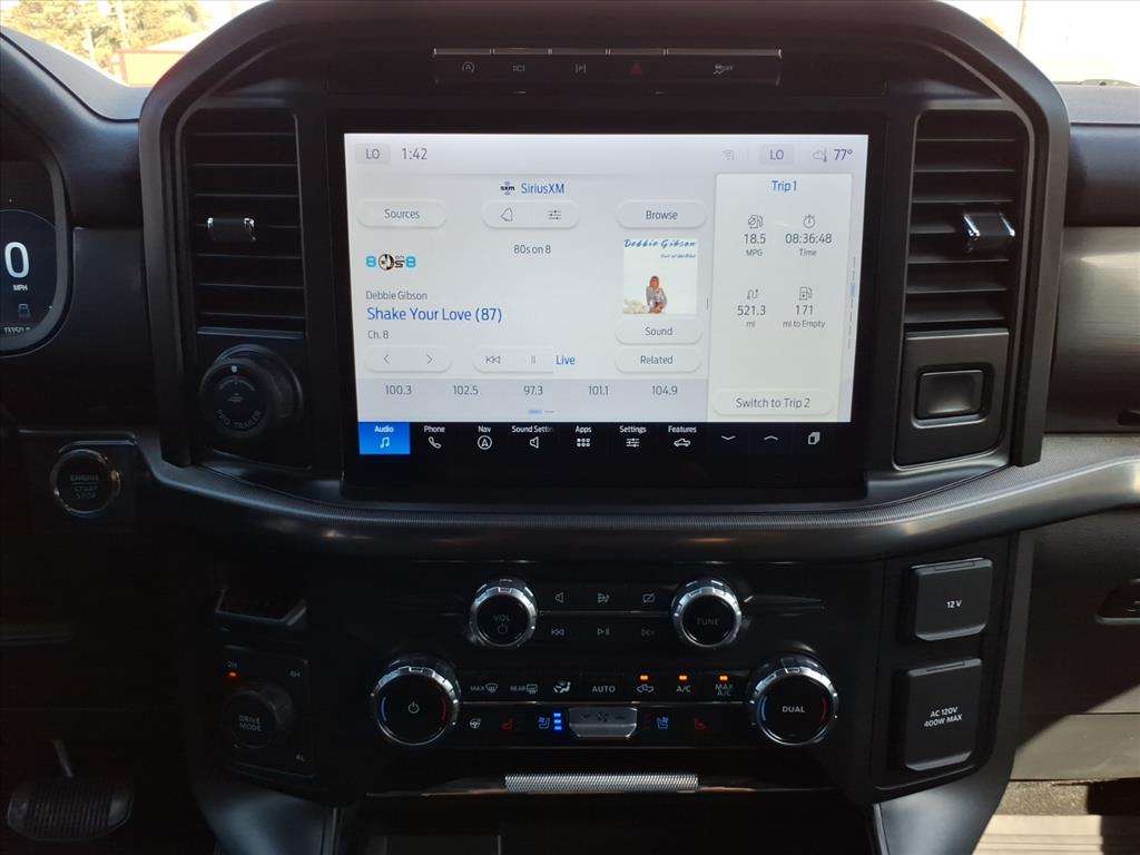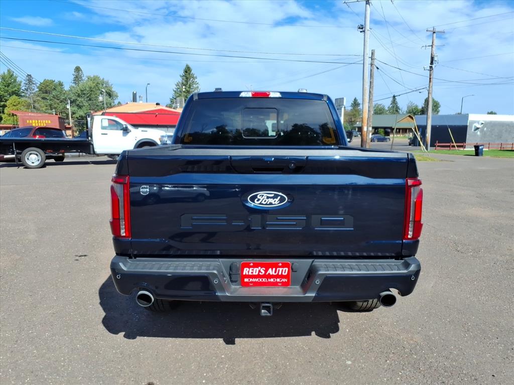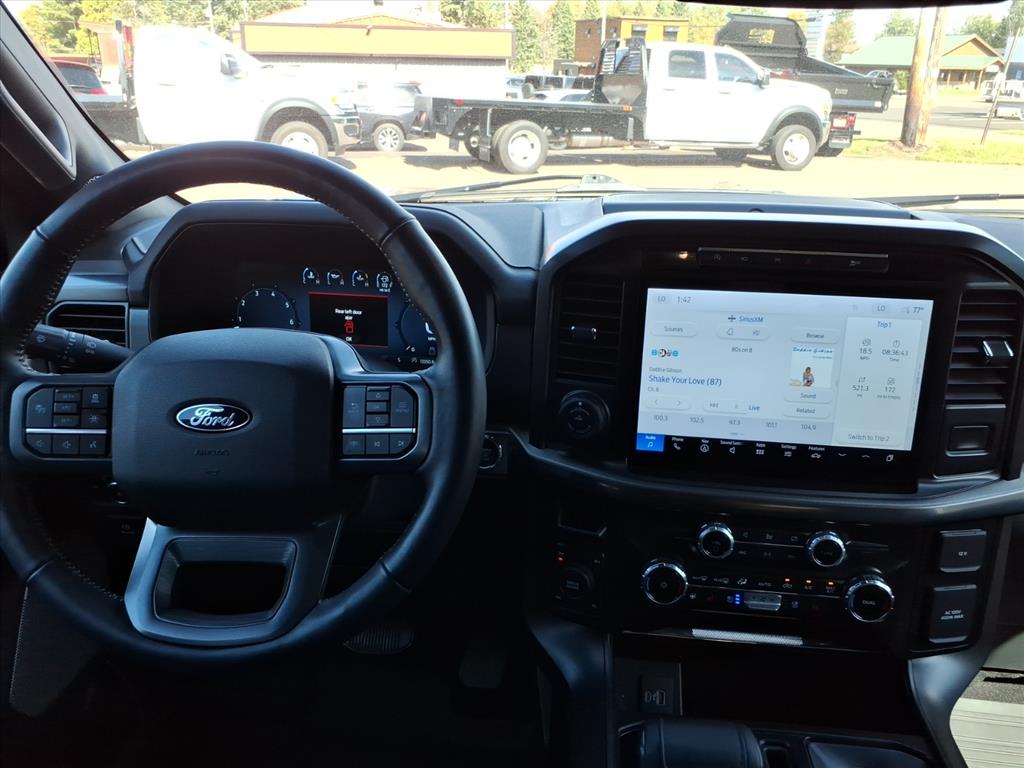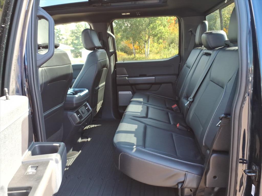 This vehicle is a 2024 Ford Supercrew 4x4 F-150 Lariat, with a 3.5 liter EcoBoost Twin Turbo V6 400hp 500 lb-ft engine, and twin turbo. It has driven 13,350 miles and has a fuel economy of 16 mpg in the city and 24 mpg on the highway. It has been crash tested for 5 out of 5 stars and comes with many features such as touch screen display, Bluetooth audio connection, blind spot sensor, hill start assist, part time with on demand four wheel drive, navigation system with voice recognition, and Bluetooth phone connectivity. Leather-trimmed seats complete the luxurious experience of this motorcar.