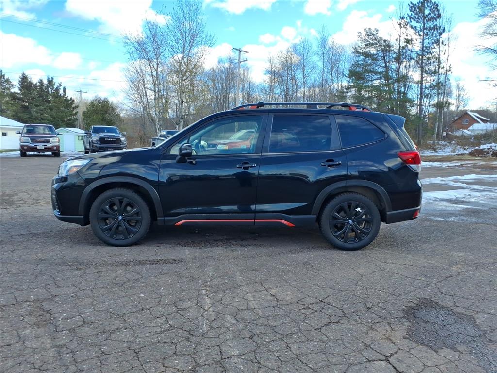 This vehicle is a 2021 Subaru Forester Sport with an all-wheel drive system and a 2.5 liter H4 182hp 178 lb-ft engine. It has been driven 98,042 miles and has a fuel economy of 26 mpg in the city and 33 mpg on the highway. It has been crash tested by the National Highway Traffic Safety Administration (NHTSA) and received a 5 out of 5 stars rating for its safety features. It also comes with many features such as a touch screen display, Bluetooth audio connection, blind spot sensor, hill start assist, center console with faux leather trim, full time four wheel drive, Apple Carplay ready, and Bluetooth phone connectivity. This car is truly a modern marvel and will surely turn heads wherever it goes.