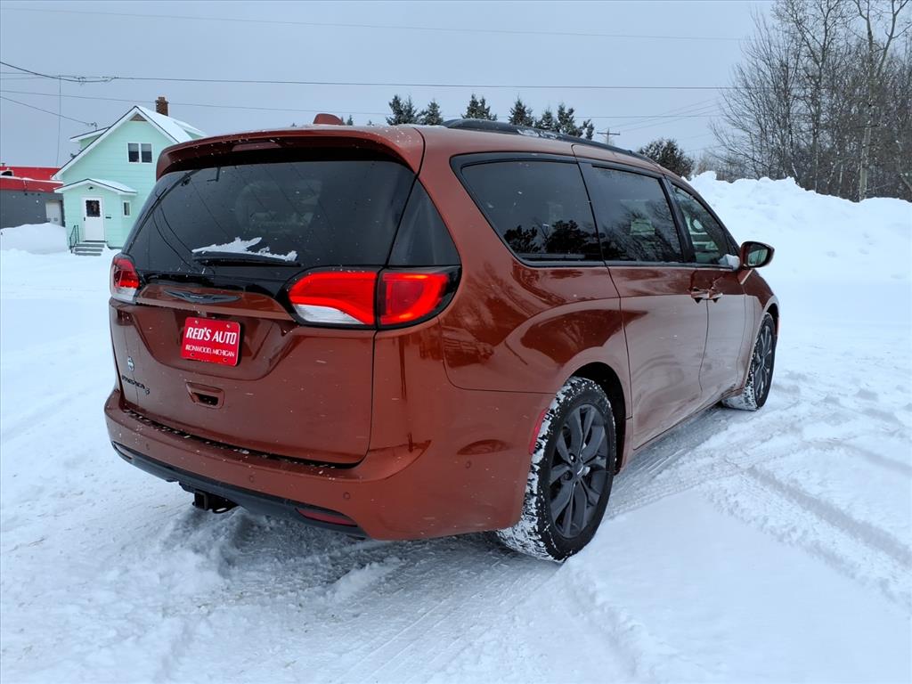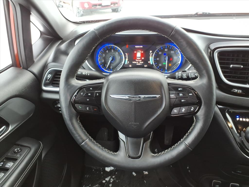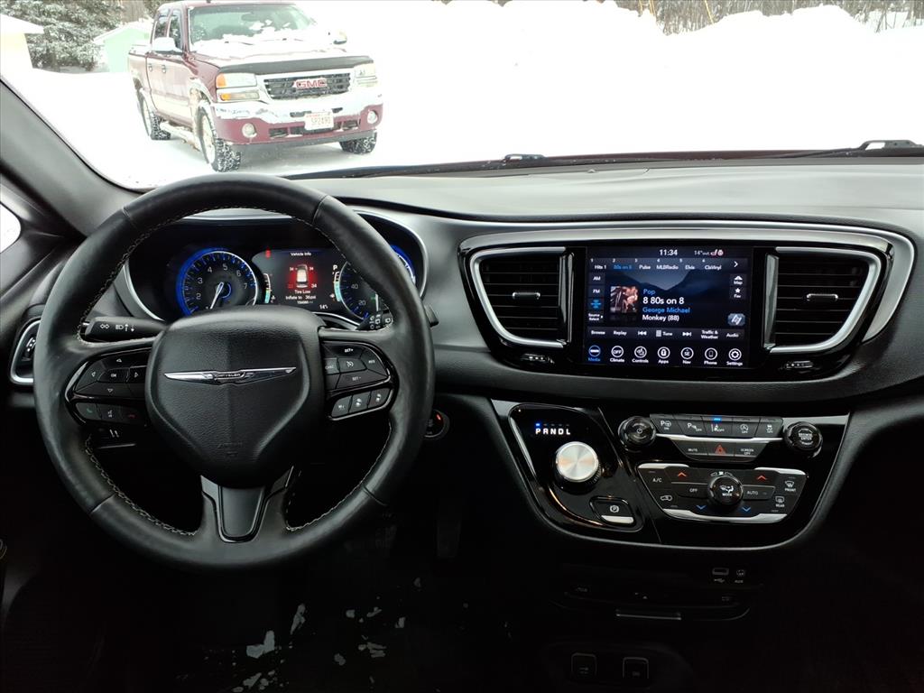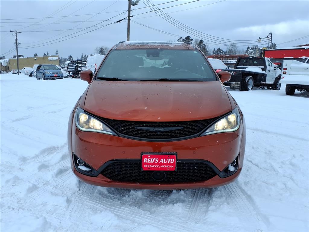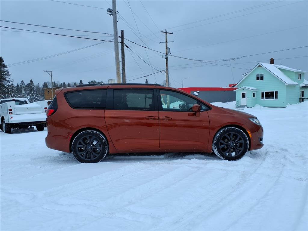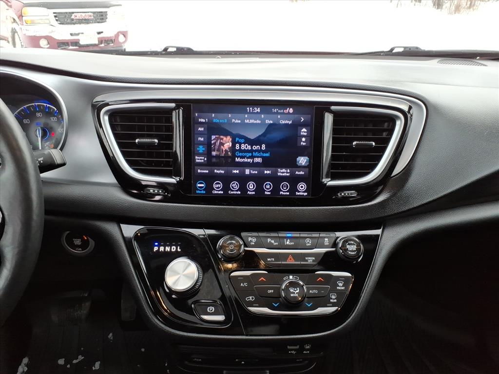 This vehicle is a 2018 Chrysler Pacifica Touring L Plus, with a 3.6 liter 6 cylinder engine and sequential port fuel injection. It has driven 156,080 miles and has received a crash test rating of 5 out of 5 stars. It features a touch screen display, Bluetooth audio connection, blind spot sensor, hill start assist, Apple Carplay ready, Bluetooth phone connectivity, and leather seats. This automobile is sure to turn heads wherever it goes!